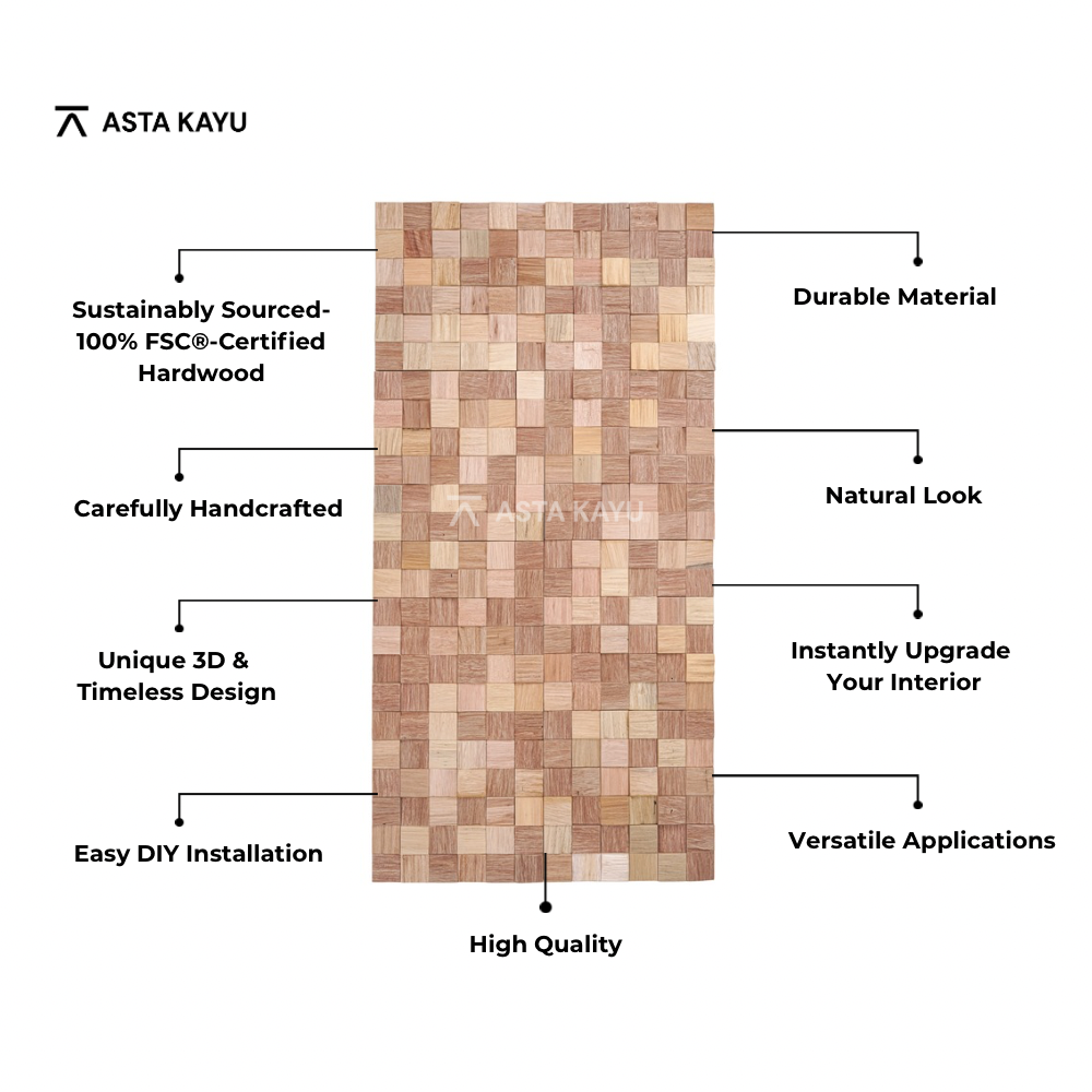 At Asta Kayu, we bring nature’s beauty into every space with handcrafted wooden panels made from 100% real Indonesian hardwood. Our Exotic Wooden Wall Panel Collection is designed for premium quality and lasting durability, adding timeless elegance to any interior. Each panel features unique 3D designs and is ready for easy DIY installation, making it both stylish and practical.